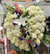 This casket spray is not only a tribute to a lost loved one, but a reminder of the many joyous times spent together.