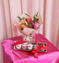 A sweet and simple peach-and-pink arrangement is cheerful, and effortlessly elegant — perfect for birthdays, thank-yous, baby showers, or just because!