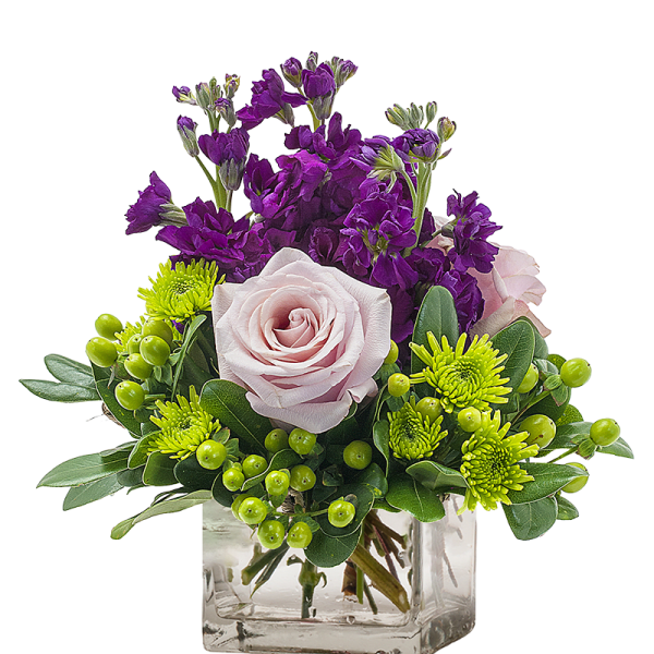 I picked this arrangement due to the bright colors with purple, red, and yellow.  The flowers delivered looked nothing like this arrangement.  The only flower that was the same was the yellow roses.  The rest of the arrangement had completely different flowers and was mostly yellow and white…with daisies (that aren’t even in the picture of what I ordered).  Did have a HINT of purple and red but not the bright flowers in the picture. They are nice flowers but don’t have that WOW factor that the picture showed.  I was very disappointed when the recipient sent me a picture of them.