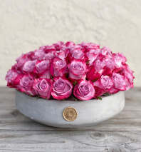 This timeless classic features two dozen red roses accented with leafy greens in our 6" cement pot! This arrangement is great for any occasion (especially Valentine's Day) and definitely says "I Love You" just right!