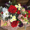 Fun, colorful and romantic, Color Me Loved is a compact arrangement with roses and other seasonal blooms wrapped beautifully in a bow.