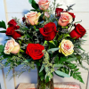 A stunning mixed arrangement featuring a dozen red roses and 6 pink roses symbolizes a combination of passionate love (red) and admiration or gratitude (pink). Show her how much you love and appreciate her with