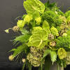 This striking arrangement features a vibrant mix of green flowers, creating a lush and refreshing display. Elegant orchids add a touch of sophistication with their unique shapes, while the bold anthuriums provide a glossy finish that catches the eye. Delicate lisianthes contribute a soft, romantic texture, and the hydrangeas bring volume and depth to the composition. Together, these green blooms create a serene and harmonious atmosphere, perfect for adding a touch of nature’s beauty to any space.