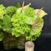 A captivating display of green, this arrangement brings together a variety of lush foliage to create an ethereal, almost dreamlike effect. With its rich, calming shades of green, Verdant Mirage evokes a sense of peaceful tranquility, like a fleeting vision of nature’s beauty. Perfect for adding a refreshing, serene touch to any room.