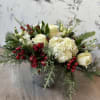 Blitzen's Berry Bliss is a festive arrangement that combines the vibrant colors of the season. White hydrangeas and roses form the snowy foundation, while the rich red hypericum berries and Alstroemeria add a burst of holiday warmth. This arrangement captures the essence of joy and celebration, making it a stunning addition to your holiday decor.
