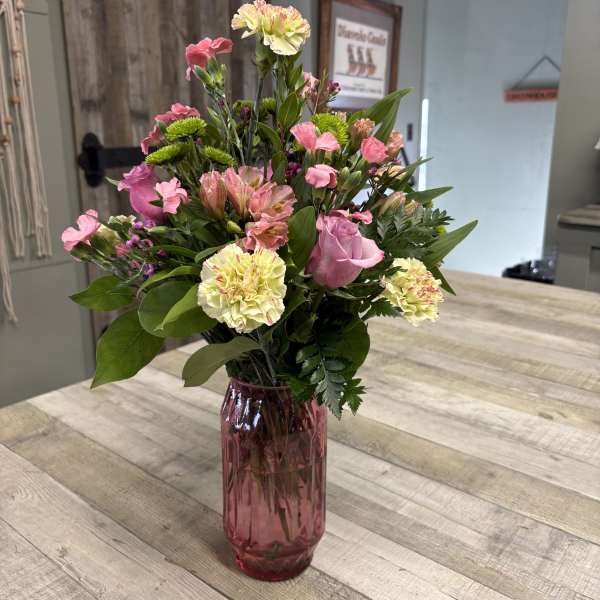 This was a birthday gift for my sister and she loves it! So glad I found a local florist and my sister is familiar with this business which I did not know when ordering. So glad we helped make her day special and very pleased with the arrangement ❤️