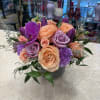 PURPLE AND PEACH ARRANGEMENT IN CERAMIC CONTAINER