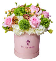 Camilla exclusively designed and sold by Velvet Stems™ is a graceful blend of romance and refinement. Camilla features blush roses, pristine white orchids, and soft hydrangea accented with warm autumn foliage — all artfully arranged in a modern glass bowl for a full 360° presentation. This design radiates effortless elegance and timeless beauty, making it a stunning statement for any occasion.
