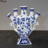 Elevate your floral design with this elegant Blue and White Tulipiere. Inspired by classic Delftware, this vessel features a central spout and four individual side ports, allowing for effortless, structural arrangements.