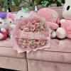 Experience the timeless charm of our Enchanted Rose Delight bouquet. Featuring 25 stunning pink roses adorned with sparkling diamonds at their centers, this arrangement is a true vision of elegance. Each rose is gracefully nestled among delicate baby’s breath and wrapped in elegant pink paper. *PLEASE CALL THE STORE TO CHANGE THE LETTERING ON THE BANNER*