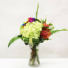 Enhance your space with our Modern Hydrangea and Rainbow Rose Arrangement, and enjoy the vibrant colors and elegant design that make it a perfect addition to any decor.