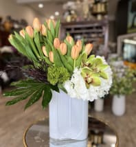 In some instances, the florists’ photo may represent an overall theme or look and include a one-of-a-kind vase which cannot be exactly replicated. Although the actual bouquet may not precisely match the photo, its temperament will. Occasionally, substitutions of flowers or containers happen due to weather, seasonality and market conditions which may affect availability. If this is the case with the gift you've selected, the local florist will ensure that the style, theme and color scheme of your arrangement is preserved and will only substitute items of equal or higher value.