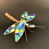 The wings are adorned with irregular glass mosaic pieces in blues, teals, greens and bright yellow, producing a jewel-like, geometric pattern that contrasts beautifully with a matte dark background. The piece reads as both artisan décor and a cheerful floral topper; it works equally well tucked into a bouquet or displayed alone on a shelf. Give this dragonfly as a thoughtful accent for birthdays, anniversaries, or to brighten a get-well or thinking-of-you bouquet-the vivid colors and handmade feel convey warmth and cheer. Sized to complement most arrangements, it requires no care beyond gentle dusting and will keep brightening the recipient's space for years to come.