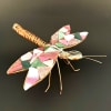 A playful, handcrafted dragonfly accent that brings warm, autumnal color to any tabletop or bouquet - perfect as a seasonal gift accent or a whimsical housewarming touch. This decorative metal and mosaic glass sculpture works beautifully as an accent for an anniversary bouquet or as a standalone home décor piece to celebrate someone who loves nature and crafty details.