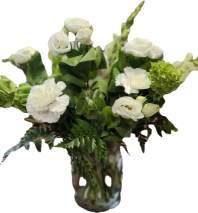 Soft, elegant, and refreshingly timeless, this all-white arrangement brings natural beauty to any celebration or space. This arrangement features airy accents of greenery and a lush variety of in-stock white flowers, offering a clean sophisticated look that complements every birthdays, anniversaries, funerals, or just for simple everyday enjoyment.