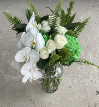 In some instances, the florists’ photo may represent an overall theme or look and include a one-of-a-kind vase which cannot be exactly replicated. Although the actual bouquet may not precisely match the photo, its temperament will. Occasionally, substitutions of flowers or containers happen due to weather, seasonality and market conditions which may affect availability. If this is the case with the gift you've selected, the local florist will ensure that the style, theme and color scheme of your arrangement is preserved and will only substitute items of equal or higher value.