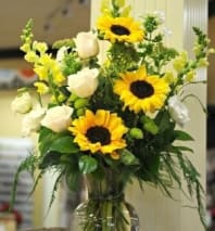 You know the rest! Send a little pep in their step for the day while enjoying the beautiful yellow roses and sunflowers in this lovely arrangement. Now doesn’t it feel good?!