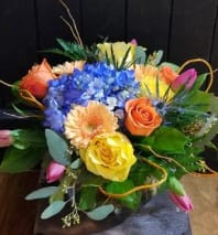 In some instances, the florists’ photo may represent an overall theme or look and include a one-of-a-kind vase which cannot be exactly replicated. Although the actual bouquet may not precisely match the photo, its temperament will. Occasionally, substitutions of flowers or containers happen due to weather, seasonality and market conditions which may affect availability. If this is the case with the gift you've selected, the local florist will ensure that the style, theme and color scheme of your arrangement is preserved and will only substitute items of equal or higher value.