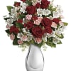 Turn up the heat on a new romance - or a lifelong love affair - with this premium rose bouquet. It features a total of fifteen of our finest red and hot pink roses and is accented with smaller red spray roses and luxuriant greens. It's all artfully arranged in our stunning Silver Reflections vase.