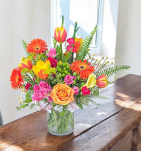 In some instances, the florists’ photo may represent an overall theme or look and include a one-of-a-kind vase which cannot be exactly replicated. Although the actual bouquet may not precisely match the photo, its temperament will. Occasionally, substitutions of flowers or containers happen due to weather, seasonality and market conditions which may affect availability. If this is the case with the gift you've selected, the local florist will ensure that the style, theme and color scheme of your arrangement is preserved and will only substitute items of equal or higher value.