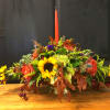 Candles sit on a beautiful mixture of fall foliages and autumn colored flowers. 1,2 & 3 Candle centerpieces are custom created for your order with the freshest flowers and foliges available.